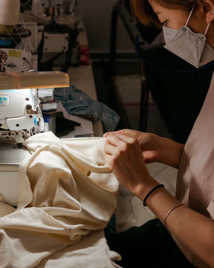 Made locally, Vestige approaches design with a slow fashion ethos and follows a more thoughtful process in an effort to combat the unnecessary waste of the apparel industry. Lee works closely with local garment factories to incorporate botanic tencel (a fibre made from environmentally responsible wood sources in a closed-loop production), hemp, wool, and organic cotton. More than that, and offering pre-sale ordering to limit excess inventory, Lee works with local tailors in Vancouver, Canada. Paid a living wage, Lee often employs program graduates from Common Thread – a non-profit organization dedicated to providing training and career opportunities in sewing and craft to people with social and work barriers.