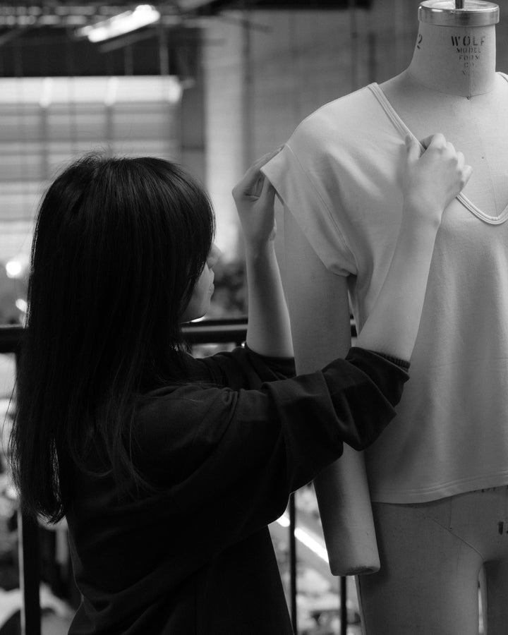 Behind the poetic Vancouver fashion brand Vestige is Aileen Lee. Designer, writer, photographer, and illustrator, Lee is a multi-hyphenate. With a degree in English Literature from the University of British Columbia and a master’s in Global Fashion Management informing her designs, Vestige exists in verse as much as it does on the body. A collection of small batch minimalistic sets, accessories, and a few embroidered garments, the superb quality of Lee’s basics demonstrates how far a few staple pieces can go.