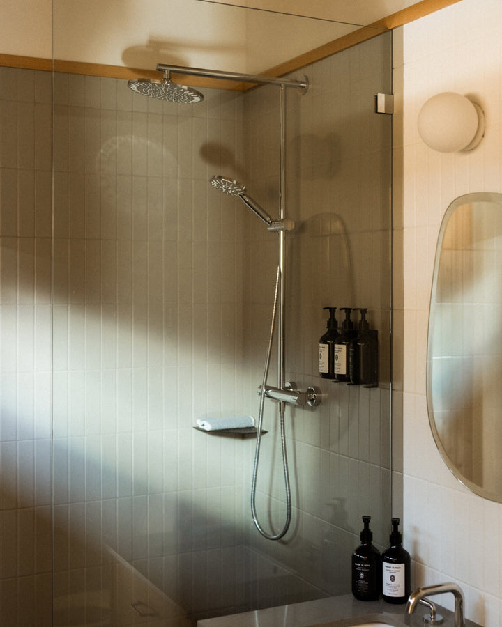 At Kitoki, a curved pathway paved with large, flat stones leads directly to the bathhouse, the property’s centerpiece. Along the way, it ushers you past three private cabins. Each one is marked by hand-crafted custom bronze kanji signage: (wood), 木木 (trees), and (forest). A crisp silence surrounds you. So tranquil you can hear the air brush up against your skin. Upon entering, each cedar-clad cabin is equipped with its own kitchenette, and a little tray of breakfast goods like homemade cookies, scones, and granola welcomes you. A large queen-sized bed faces out onto the blanket of Douglas firs. But, as comfortable as the cabins are, the real miracles start just behind the hand-woven rope noren of the bathhouse. Past the wooden sliding doors and lavish dark stone shower, an arresting forest view receives you in the open-air bath. The view from here is best of all.