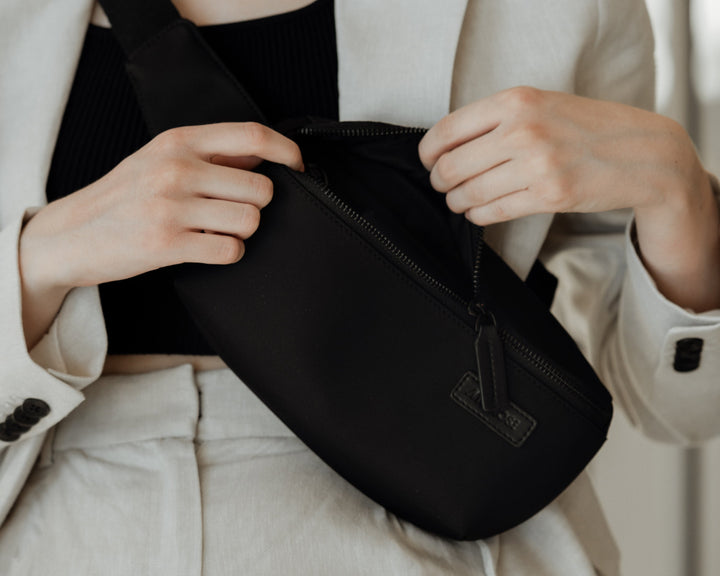 Being in a new environment – especially a little slice of nature – calls your attention to things that you may not have otherwise noticed. Suddenly, the sound of the wind soughing among the leaves sings a bit louder. The feeling of pebbles tumbling under your foot as you traipse across them on the shore alleviates a bit of stiffness in your step. Even something as simple as being seated on a blanket with a little amuse-gueule tastes a bit sweeter out in the wild. This requires little more than what's in a Metro Sling. No heavy trekking bag or hiking sticks, just you and your essentials out on a mini-adventure. But all of it grounding your energy for a return to city life. ■